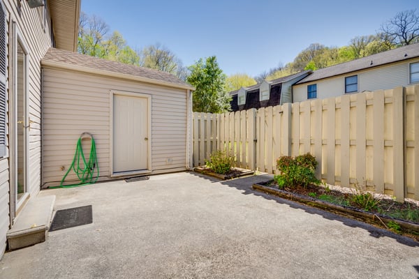 This lovely, three bedroom, end unit townhome features an entry foyer, spacious living room with cozy fireplace, separate dining room, great for those get togethers, an eat-in kitchen, a half bath, and a laundry area, all on the main level. Step outside from the living room and enjoy the privacy of a fully fenced in, garden style patio. In addition, a generous sized storage shed provides plenty of space for all those extra items. Upstairs you'll find a large primary bedroom with ensuite bath, two guest bedrooms, and a full size bathroom. Plan your Summer picnics sitting by the peaceful creek, or relax at the community swimming pool. Hickory Lake is a well established condo community, and is conveniently located within minutes of ETSU, the VA Hospital, JC Med Center, and all the amenities of Johnson City, including the Tweetsie Trail, Buffalo Mountain Trailhead, and Tannery Knobs Mountain Bike Park. Schedule your showing today!